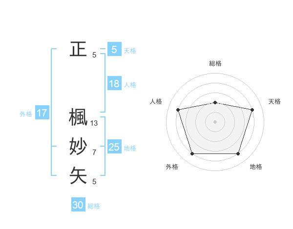 正 楓妙矢さんを姓名の画数から五運を鑑定