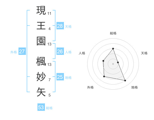 現王園 楓妙矢さんを姓名の画数から五運を鑑定