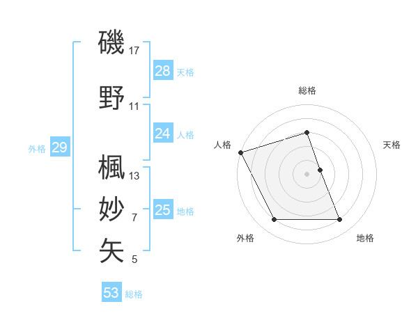 磯野 楓妙矢さんの総格は53画の3点!