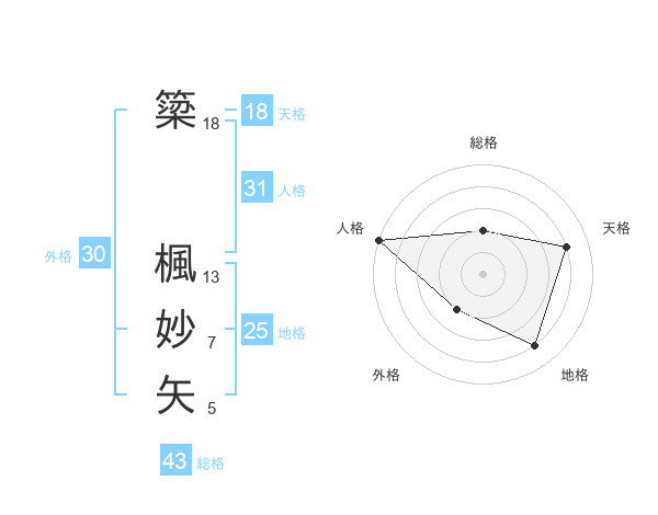 簗 楓妙矢さんを姓名の画数から五運を鑑定