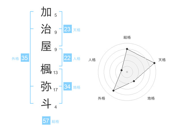 加治屋 楓弥斗さんを姓名の画数から五運を鑑定