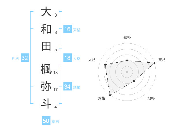 大和田 楓弥斗さんを姓名の画数から五運を鑑定