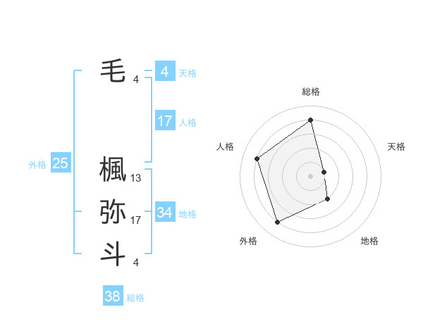 毛 楓弥斗さんを姓名の画数から五運を鑑定