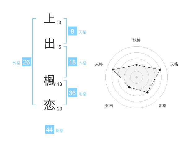 上出 楓恋さんを姓名の画数から五運を鑑定