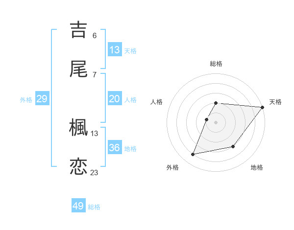 吉尾 楓恋さんを姓名の画数から五運を鑑定