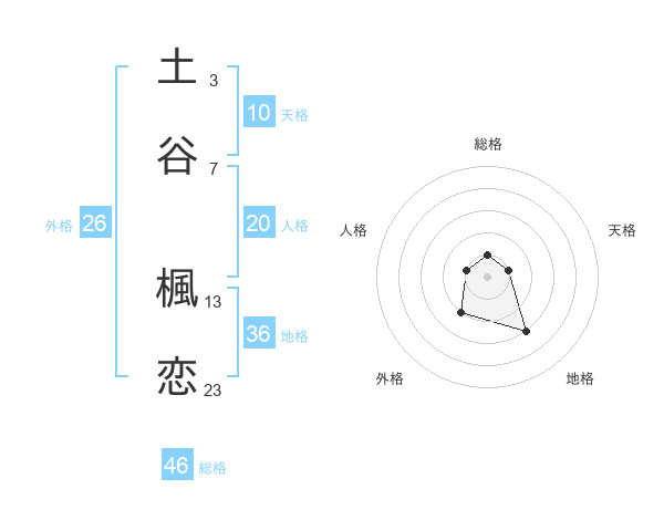 土谷 楓恋さんを姓名の画数から五運を鑑定