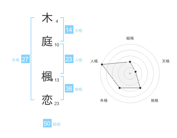 木庭 楓恋さんを姓名の画数から五運を鑑定