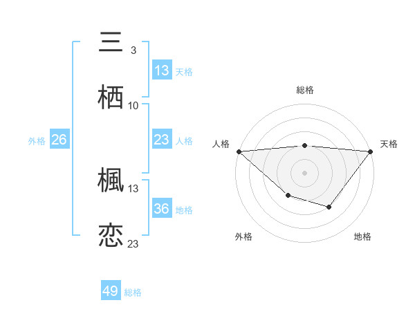 三栖 楓恋さんの天格は13画の5点!