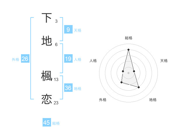 下地 楓恋さんを姓名の画数から五運を鑑定