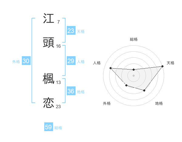 江頭 楓恋さんを姓名の画数から五運を鑑定