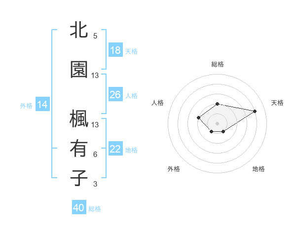 北園 楓有子さんを姓名の画数から五運を鑑定