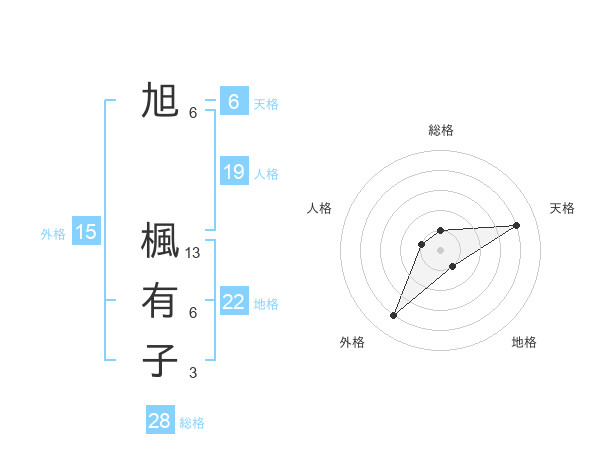 旭 楓有子さんの総格は28画の1点!