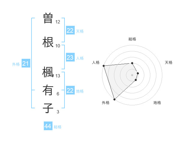 曽根 楓有子さんの天格は22画の1点!