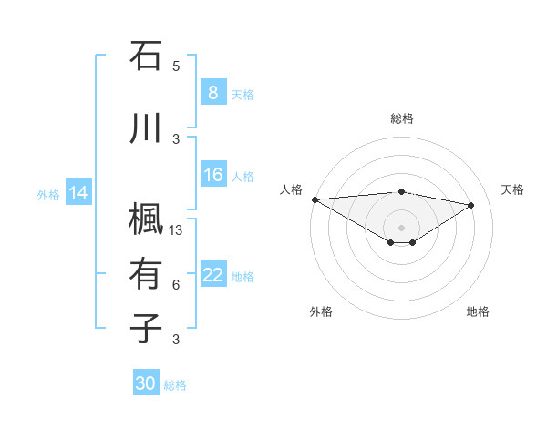 石川 楓有子さんを姓名の画数から五運を鑑定