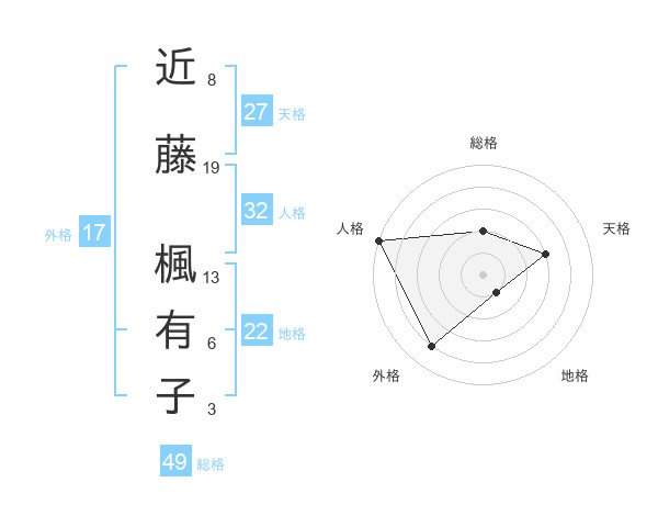 近藤 楓有子さんの総格は49画の2点!