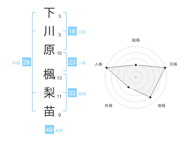下川原 楓梨苗さんを姓名の画数から五運を鑑定