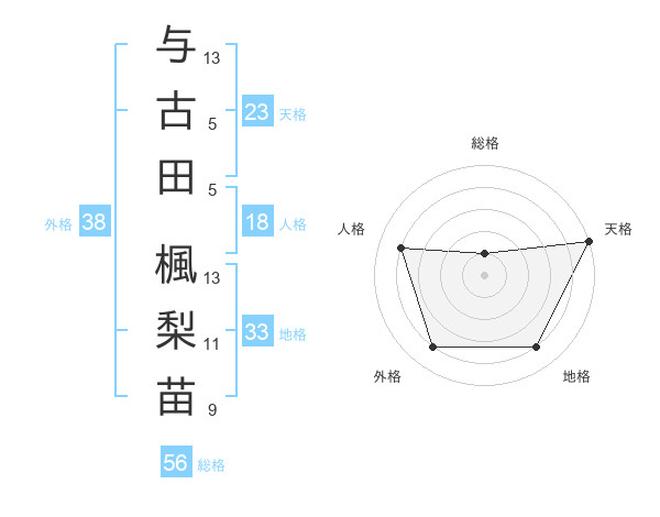与古田 楓梨苗さんの外格は38画の4点!