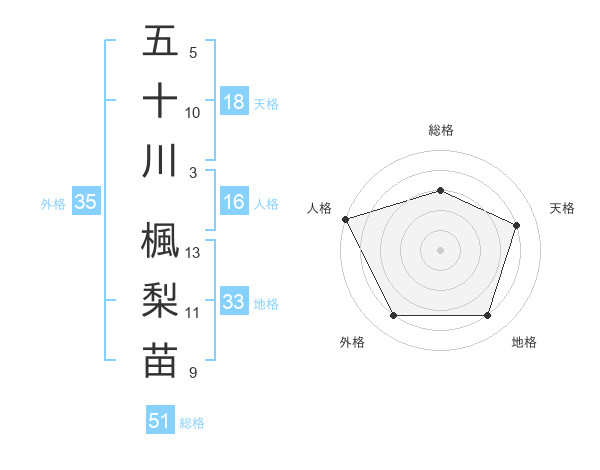 五十川 楓梨苗さんの総格は51画の3点!