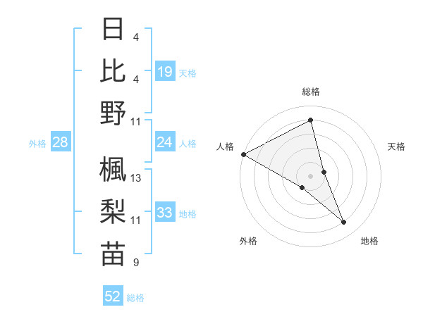 日比野 楓梨苗さんを姓名の画数から五運を鑑定