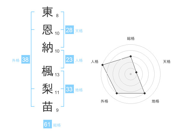 東恩納 楓梨苗さんを姓名の画数から五運を鑑定