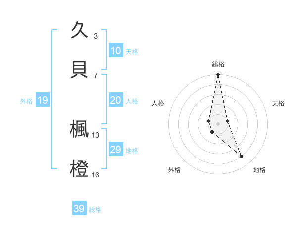 久貝 楓橙さんを姓名の画数から五運を鑑定