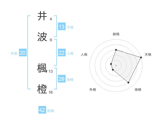井波 楓橙さんを姓名の画数から五運を鑑定