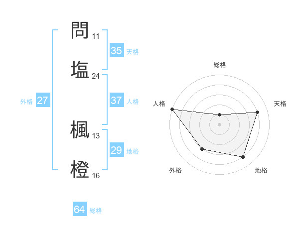 問塩 楓橙さんの総格は64画の1点!