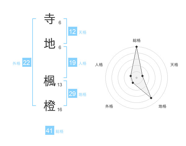 寺地 楓橙さんを姓名の画数から五運を鑑定