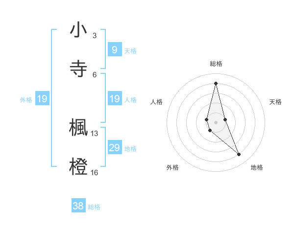 小寺 楓橙さんの総格は38画の4点!