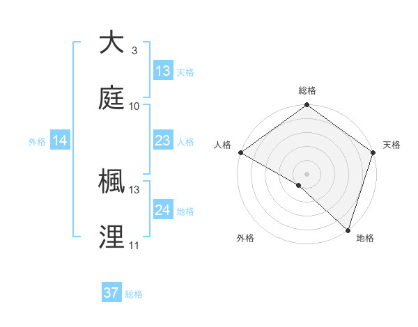 大庭 楓浬さんを姓名の画数から五運を鑑定