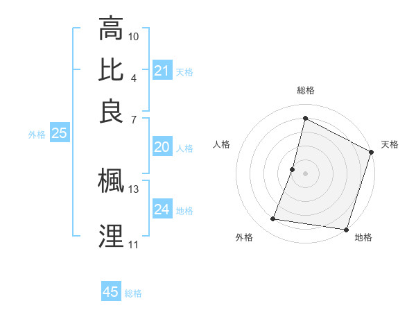高比良 楓浬さんを姓名の画数から五運を鑑定