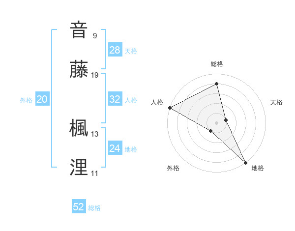 音藤 楓浬さんを姓名の画数から五運を鑑定
