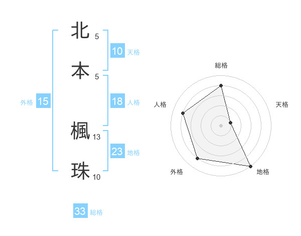 北本 楓珠さんの総格は33画の4点!