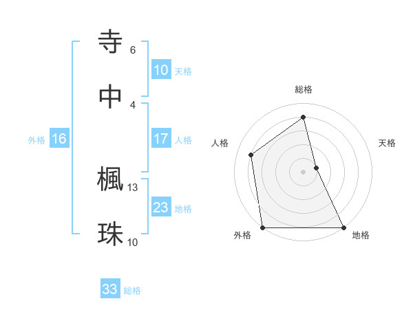 寺中 楓珠さんを姓名の画数から五運を鑑定