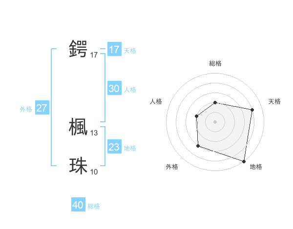 鍔 楓珠さんを姓名の画数から五運を鑑定