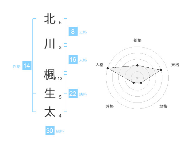 北川 楓生太さんを姓名の画数から五運を鑑定