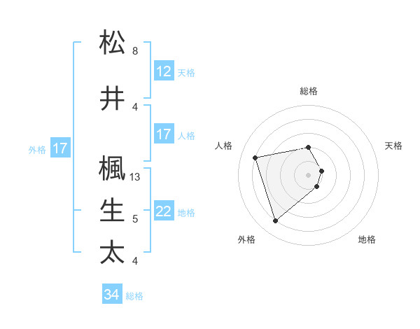 松井 楓生太さんの外格は17画の4点!