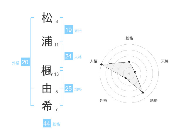 松浦 楓由希さんを姓名の画数から五運を鑑定