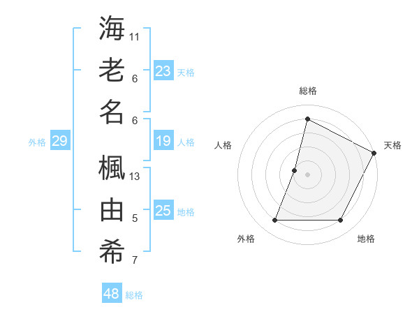 海老名 楓由希さんの総格は48画の4点!