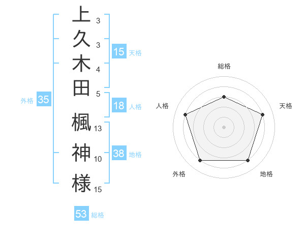 上久木田 楓神様さんを姓名の画数から五運を鑑定