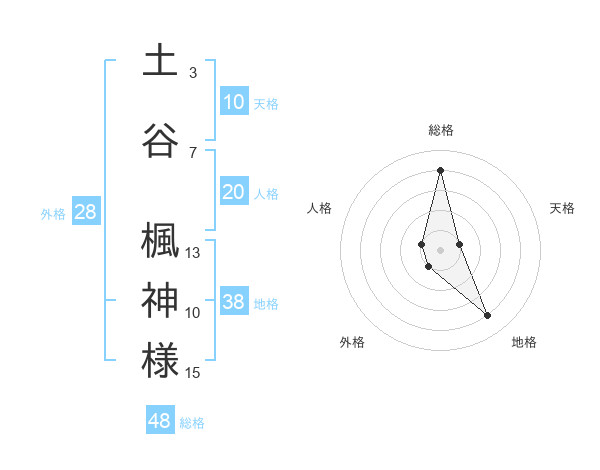 土谷 楓神様さんを姓名の画数から五運を鑑定