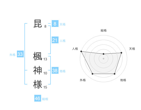 昆 楓神様さんを姓名の画数から五運を鑑定