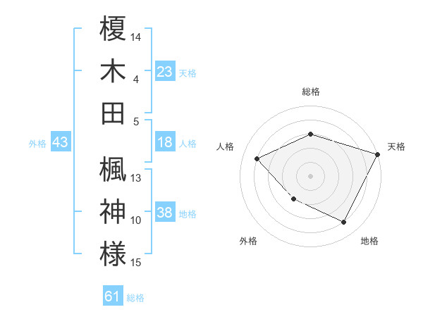 榎木田 楓神様さんを姓名の画数から五運を鑑定