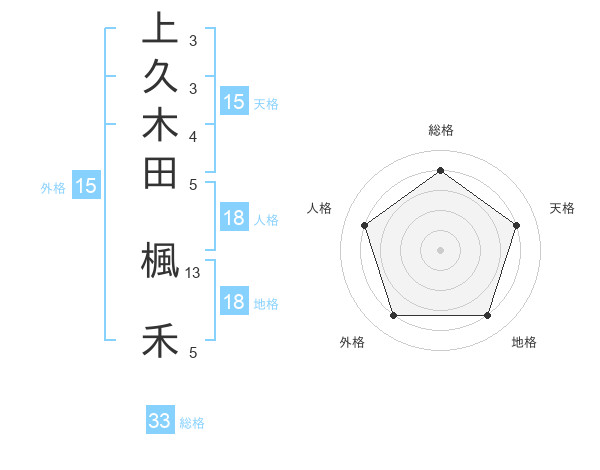 上久木田 楓禾さんを姓名の画数から五運を鑑定