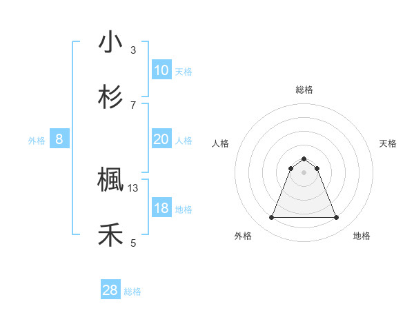 小杉 楓禾さんを姓名の画数から五運を鑑定