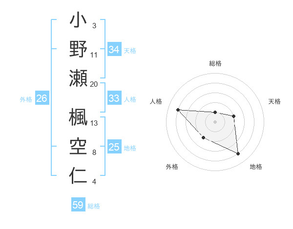 小野瀬 楓空仁さんを姓名の画数から五運を鑑定