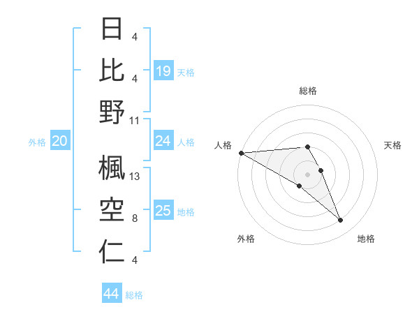 日比野 楓空仁さんを姓名の画数から五運を鑑定