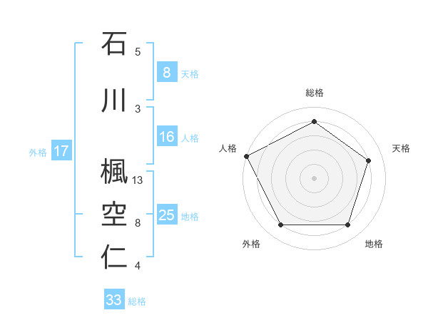 石川 楓空仁さんの総格は33画の4点