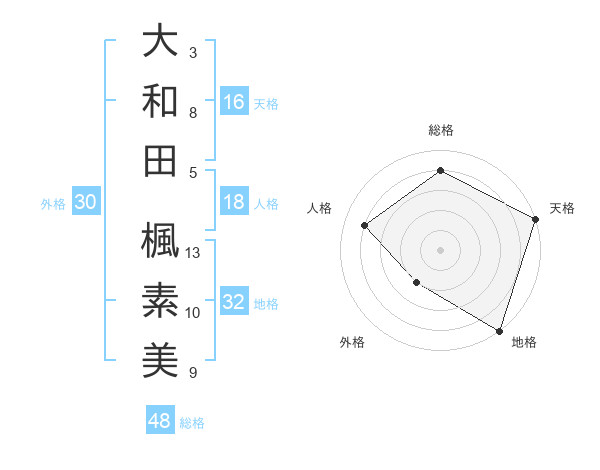 大和田 楓素美さんの天格は16画の5点!