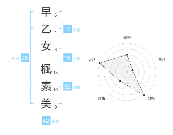 早乙女 楓素美さんを姓名の画数から五運を鑑定